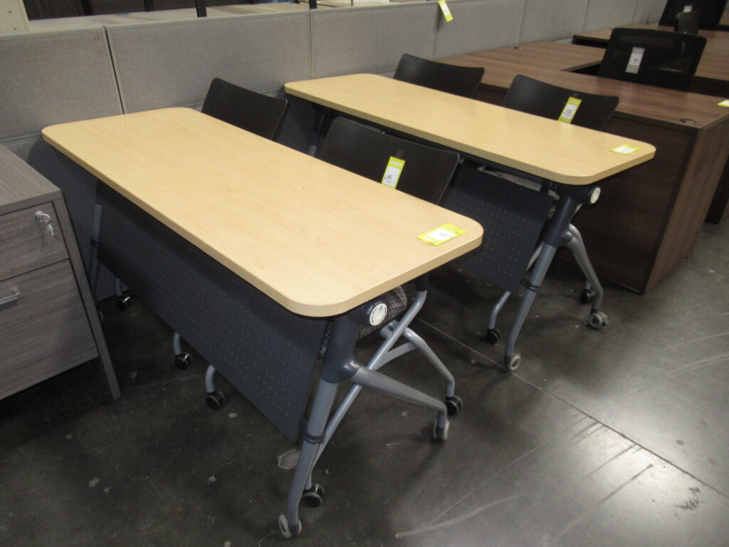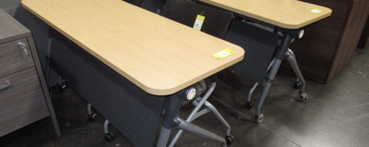 Show all Categories -Haworth Nesting Table on Wheels -light cherry color -approx size: 59″ x 22″ -10 available -$225 each